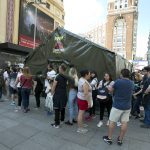 Ayer gracias a SYFY se celebró el 25 aniversario de ‘Jurassic Park’ con una acción de street marketing y un maratón de cine para los fans de la saga en pleno centro de Madrid. Desde las 17 de la tarde hasta las 20:00 todo el público que quisiese podía entrar y ver a un Allosaurio dentro de la carpa que se montó en la Plaza de Callao y luego a las 20:00 en los cines Palacio de la Prensa, se proyectaron ‘Jurassic Park’ y ‘El Mundo perdido: Jurassic Park’.