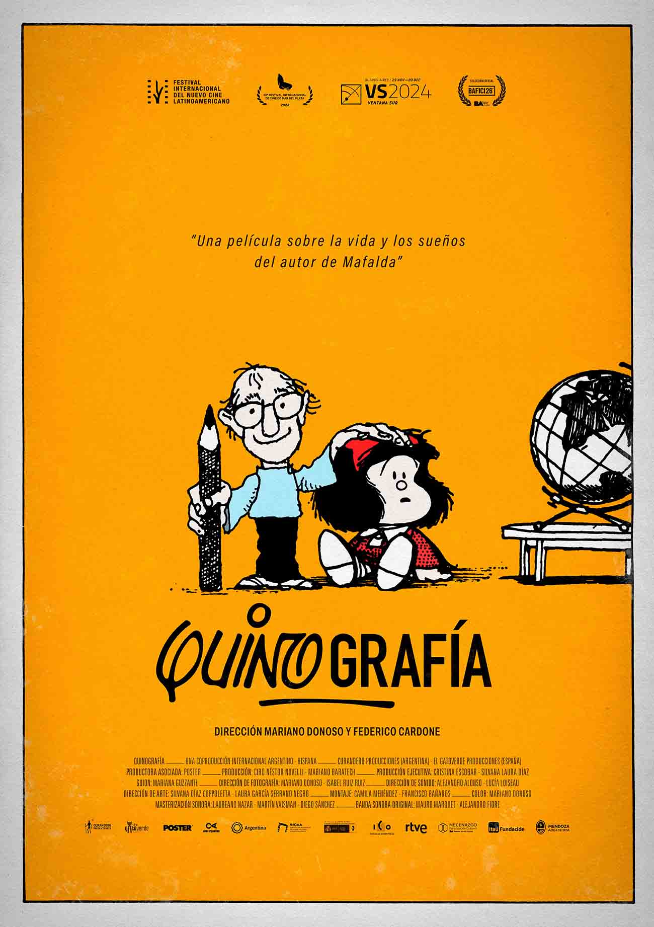 A través de su última entrevista póstuma y material inédito, dibujos originales, fotografías familiares, testimonios, el filme nos invita a viajar por los lugares donde Quino vivió y dejó huella: Buenos Aires, Milán, París, Madrid. Esta geografía afectiva, más que una biografía al uso, funciona como un mapa de su sensibilidad artística. En esos lugares cultivó y dio rienda suelta a un ingenio, camuflado de inocencia infantil con Mafalda, que descubría verdades en el espacio que otorgaba una sola tira cómica.