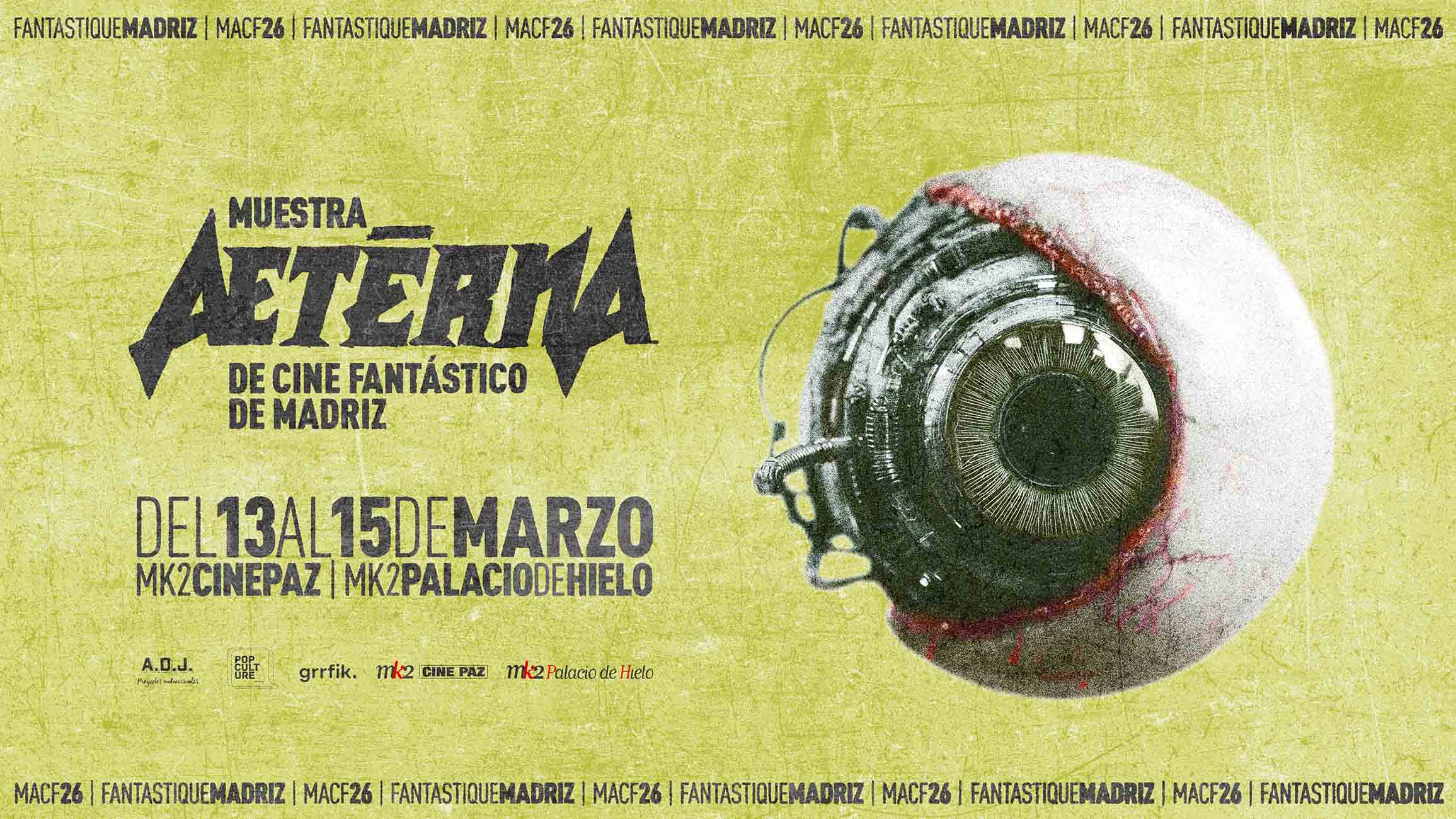 Una gran alegría llega a Madrid este próximo marzo de 2026. Y es que llega la 1ªMuestra Aeterna de Cine Fantástico de Madrid. Ya os llevamos hablando de los ciclos de Aeterna y por supuesto son los mismos responsables de estos ciclos los que desde el 13al 15 demarzo de 2026 animarán las salas madrileñas de mk2 Cine Paz y mk2Palaciode Hielo, con grandes cintas del cine fantástico.