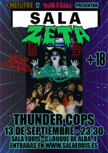 La primera cinta que se podrá ver será el 13 de septiembre a las 23:30 horas, lleva por título ‘Thunder Cops‘ (1989) y es una obra hongkonesa de acción, donde se mezclan zombies, cabezas voladoras, fantasmas, artes marciales y mucho humor. «Es posiblemente la película hongkonesa más bizarra de la historia», señalan desde Trash-O-Rama Distribución, la empresa que trae a España los largometrajes escogidos para este ciclo.