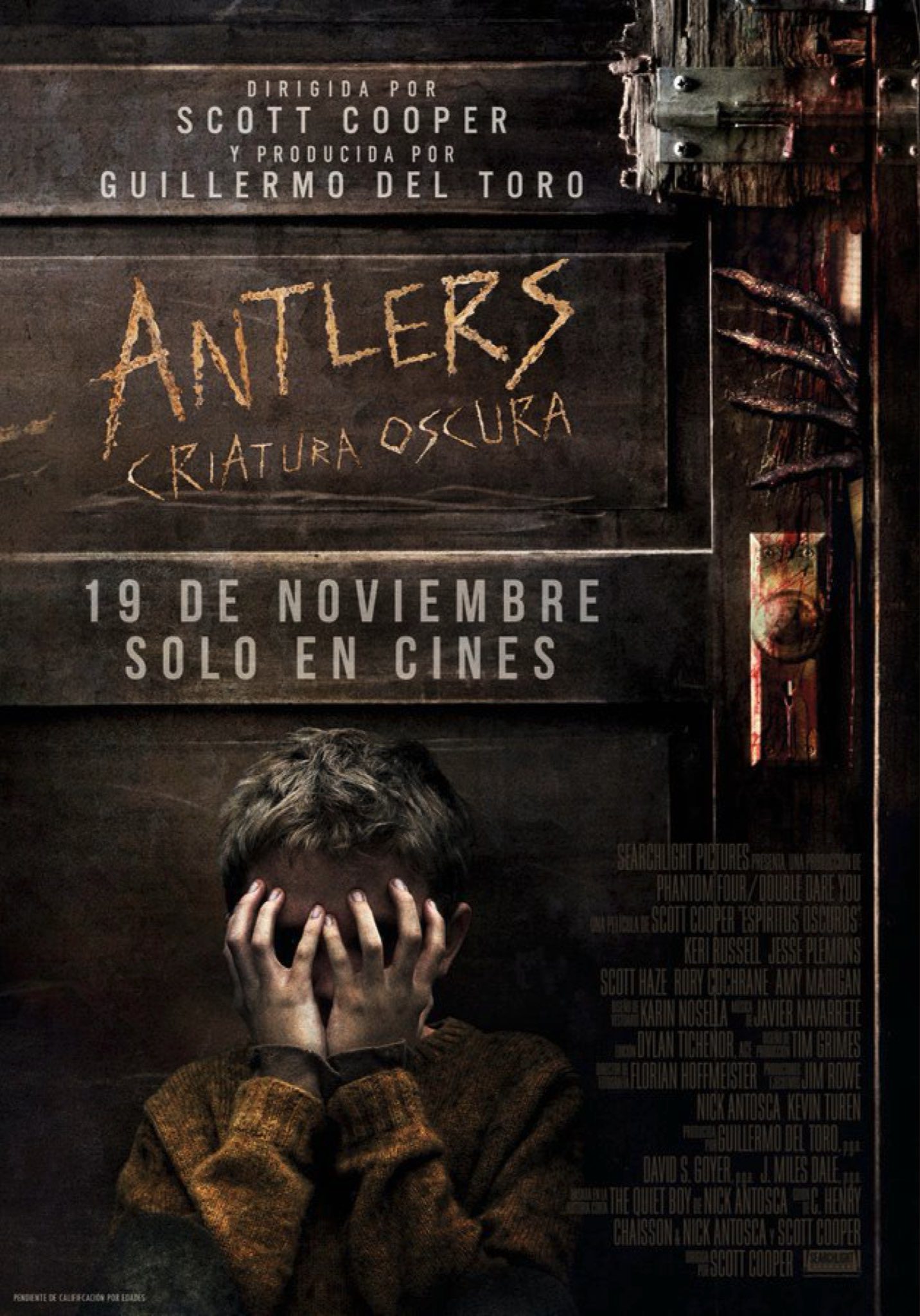Estreno en España: 19 de noviembre de 2021. Título original: Antlers. Duración: 99 min. País: Estados Unidos. Dirección: Scott Cooper. Guión: Nick Antosca, Henry Chaisson, Scott Cooper. Música: Javier Navarrete. Fotografía: Florian Hoffmeister. Reparto principal: Keri Russell, Jesse Plemons, Graham Greene, Scott Haze, Rory Cochrane, Amy Madigan, Cody Davis, Sawyer Jones, Arlo Hajdu. Producción: Searchlight Pictures, Guillermo del Toro. Distribución: Searchligt Pictures. Género: Terror. Web oficial: https://www.searchlightpictures.com/Antlers/