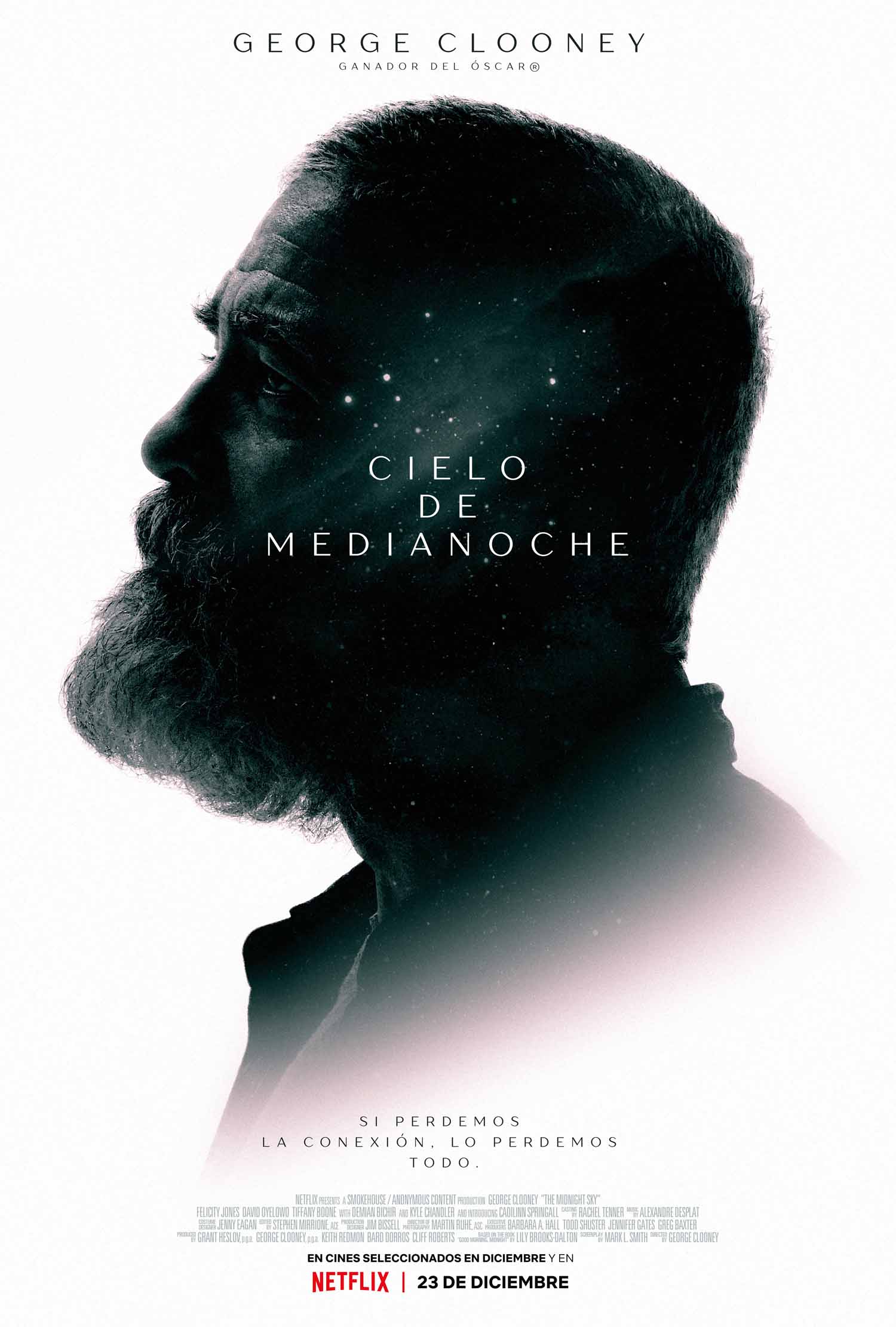 Estreno en España: 11 de diciembre de 2020 (cines), 23 de diciembre de 2020 (Netflix). Título original: The midnight sky. Duración: 118 min. País: EE.UU. Dirección: George Clooney. Guion: Mark L. Smith. Música: Alexandre Desplat. Fotografía: Martin Ruhe. Reparto principal: George Clooney, Felicity Jones, David Oyelowo, Tiffany Boone con Demián Bichir y Kyle Chandler, Caoilinn Springall. Producción: Anonymous content, Netflix, Smokehouse Pictures, Syndicate Entertainment, Truenorth Productions. Distribución: Netflix. Género: ciencia ficción, adaptación. Web oficial: https://www.netflix.com/es/title/80244645