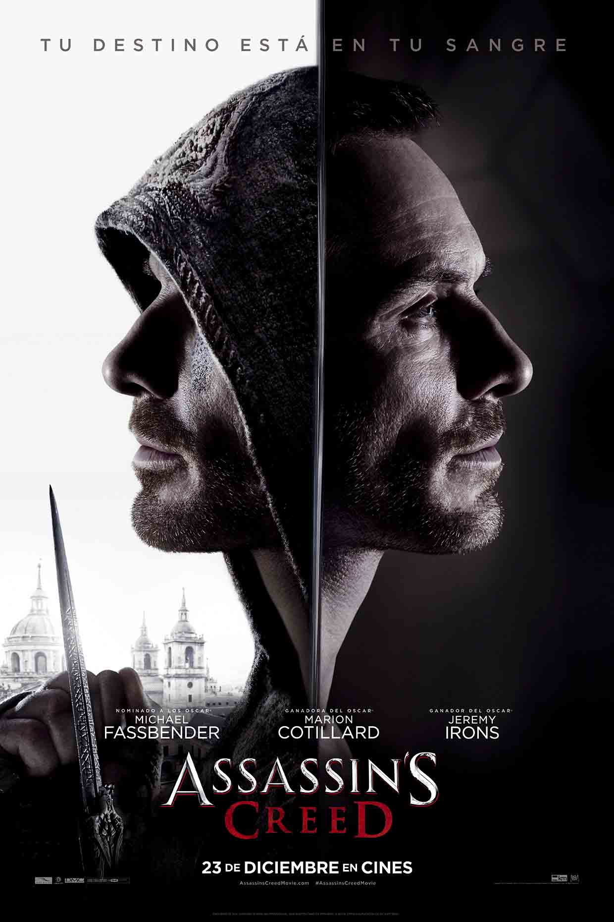 Estreno en España: 23 de diciembre de 2016. Título original: Assassin’s Creed. Duración: 108 min. País: EE.UU. Director: Justin Kurzel. Guión: Adam Cooper, Bill Collage, Michael Lesslie. Música: Jed Kurzel. Fotografía: Adam Arkapaw. Reparto principal: Michael Fassbender, Marion Cotillard, Ariane Labed, Jeremy Irons, Brendan Gleeson, Michael Kenneth Williams, Charlotte Rampling, Brian Gleeson, Carlos Bardem, Hovik Keuchkerian, Matias Varela, Denis Ménochet, Mohammed Ali,Javier Gutiérrez, Dino Fazzani, Gabriel Andreu, Megan Affonso. Producción: 20th Century Fox, Regency Enterprises, DMC Film, Ubisoft. Distribución: 20th Century Fox. Género: videojuegos, aventura, ciencia ficción. Web oficial:http://www.fox.es/assassins-creed