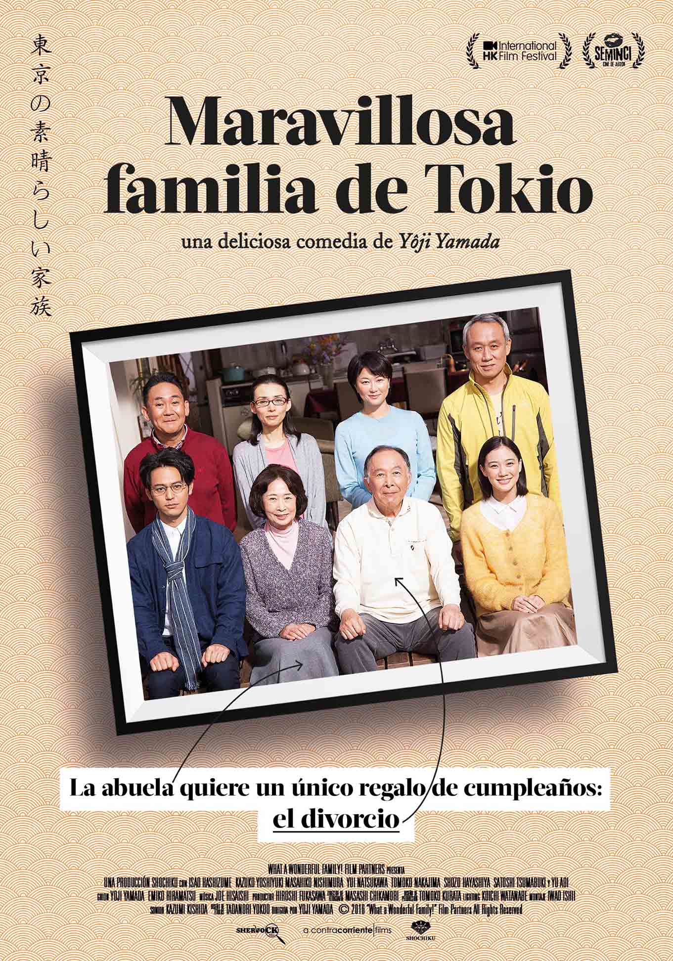 Estreno en España: 12 de mayo de 2017. Título original: Kazoku wa tsuraiyo. Duración: 108 min. País: Japón. Dirección: Yôji Yamada. Guión: Yôji Yamada, Emiko Hiramatsu. Música: Joe Hisaishi. Fotografía: Shinji Chikamori. Reparto principal: Satoshi Tsumabuki, Yû Aoi, Yui Natsukawa, Kazuko Yoshiyuki,Masahiko Nishimura, Isao Hashizume, Tomoko Nakajima, Shozo Hayashiya. Producción: Shochiku Company. Distribución: Sherlock Films, A Contracorriente Films. Género: comedia. Web oficial: http://www.sherlockfilms.com/pelicula/529/maravillosa-familia-de-tokio/