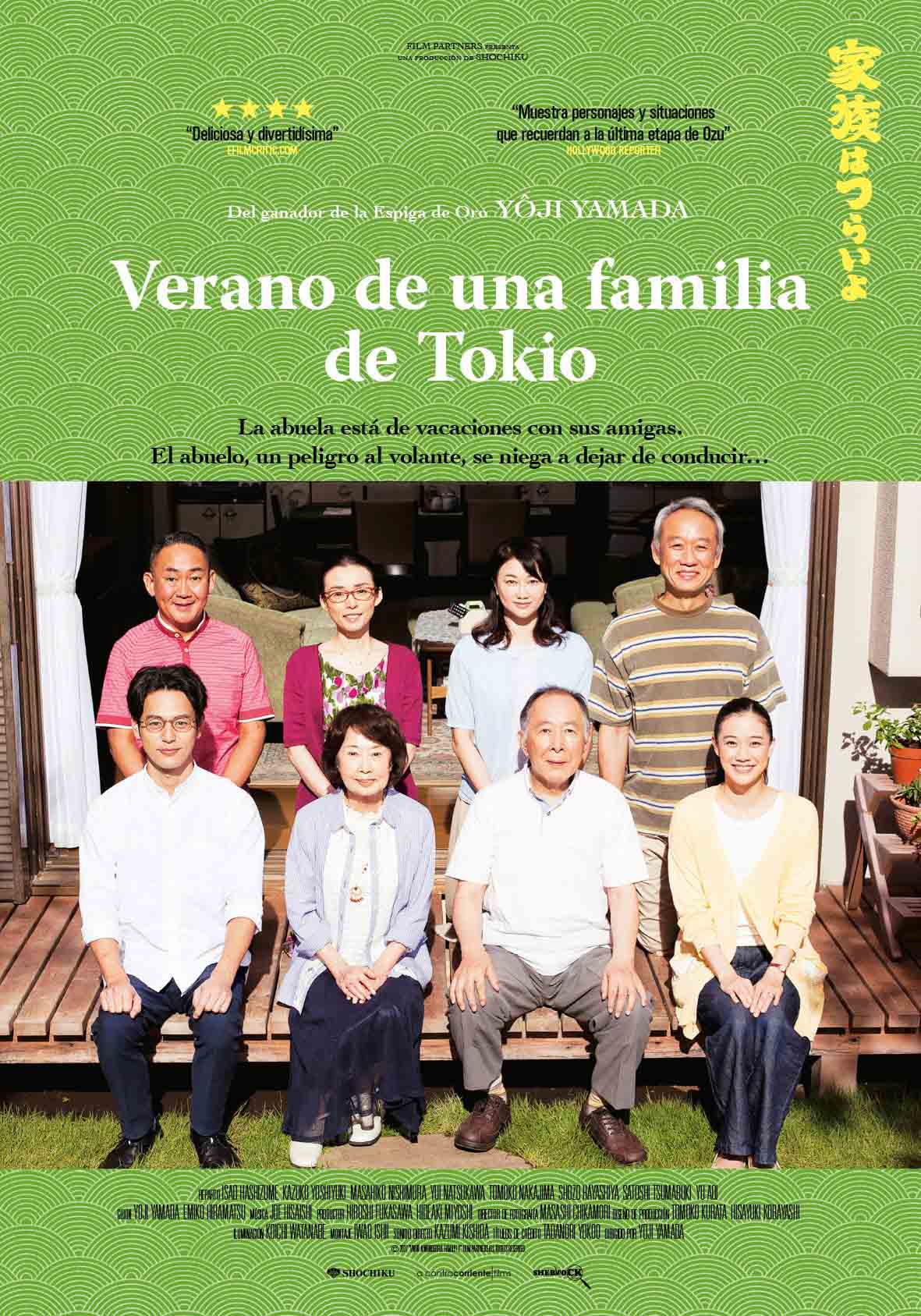 Estreno en España: 6 de abril de 2018. Título original: Kazoku wa tsuraiyo 2. Duración: 110 min. País: Japón. Dirección: Yôji Yamada. Guion: Yôji Yamada, Emiko Hiramatsu. Música: Joe Hisaishi. Fotografía: Masashi Chikamori. Reparto principal: Satoshi Tsumabuki, Yû Aoi, Kazuko Yoshiyuki, Yui Natsukawa, Isao Hashizume,Takashi Sasano, Masahiko Nishimura, Jun Fubuki, Nenji Kobayashi,Tomoko Nakajima, Yuriko Hirooka, Kôen Kondô, Tsurube Shôfukutei,Fujita Okamoto, Katsumi Kiba, Shozo Hayashiya, Jiro Dan, Masayasu Kitayama,Yûki Tokunaga, Ayumu Maruyama, Takanosuke Nakamura. Producción: GyaO, Hakuhodo DY Media Partners, Hakuhodo, Kinoshita Komuten, Kodansha, Yomiuri Shimbun, The Shochiku Kinema Kenkyû-jo, Sumitomo Corporation. Distribución: A Contracorriente Films, Sherlock Films. Género: Comedia. Web oficial: http://www.acontracorrientefilms.com/pelicula/818/verano-de-una-familia-de-tokio/